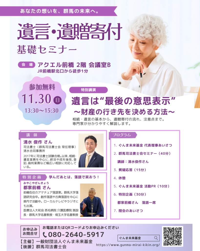 申込み:080-2640-5917または、チラシ内のQRコードより