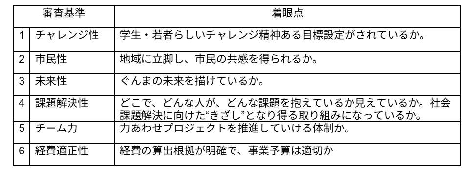 学生・若者ならではの視点で、ぐんまの幸せの循環を生み出し、未来につながると考えられる分野であり、群馬県内で実施される活動であること。